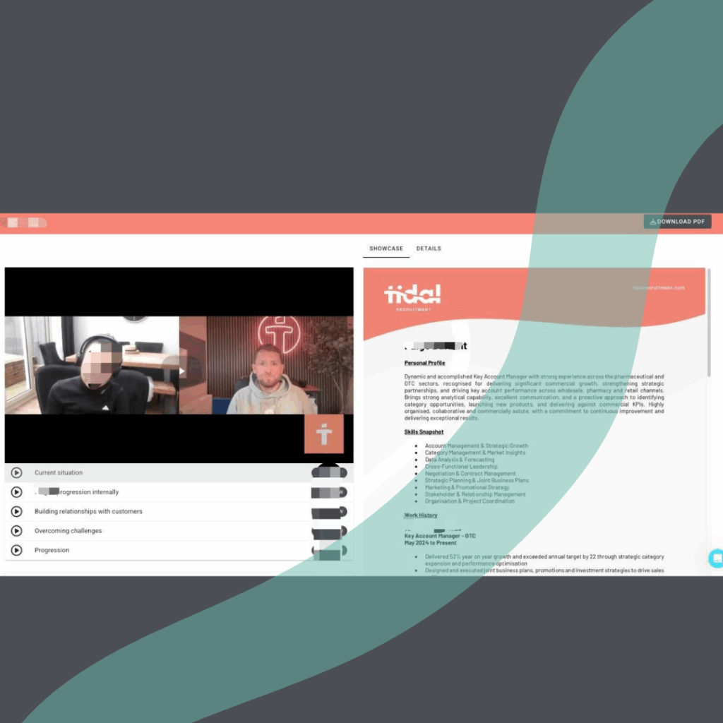 Working with Tidal you will still get that same thorough service… but now some additional high quality video snapshots with every CV.